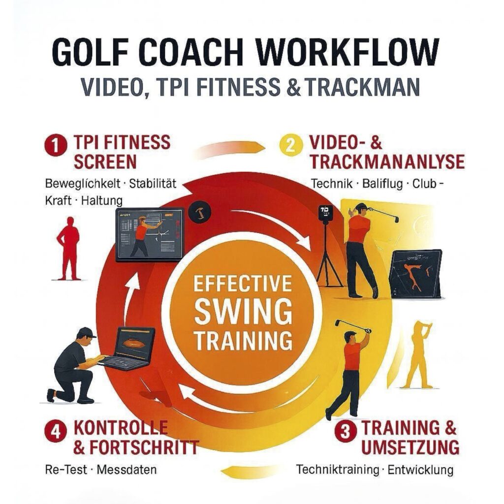 TrackMan-, Video- & TPI-Fitness-Check mit persönlichem Trainingsplan.